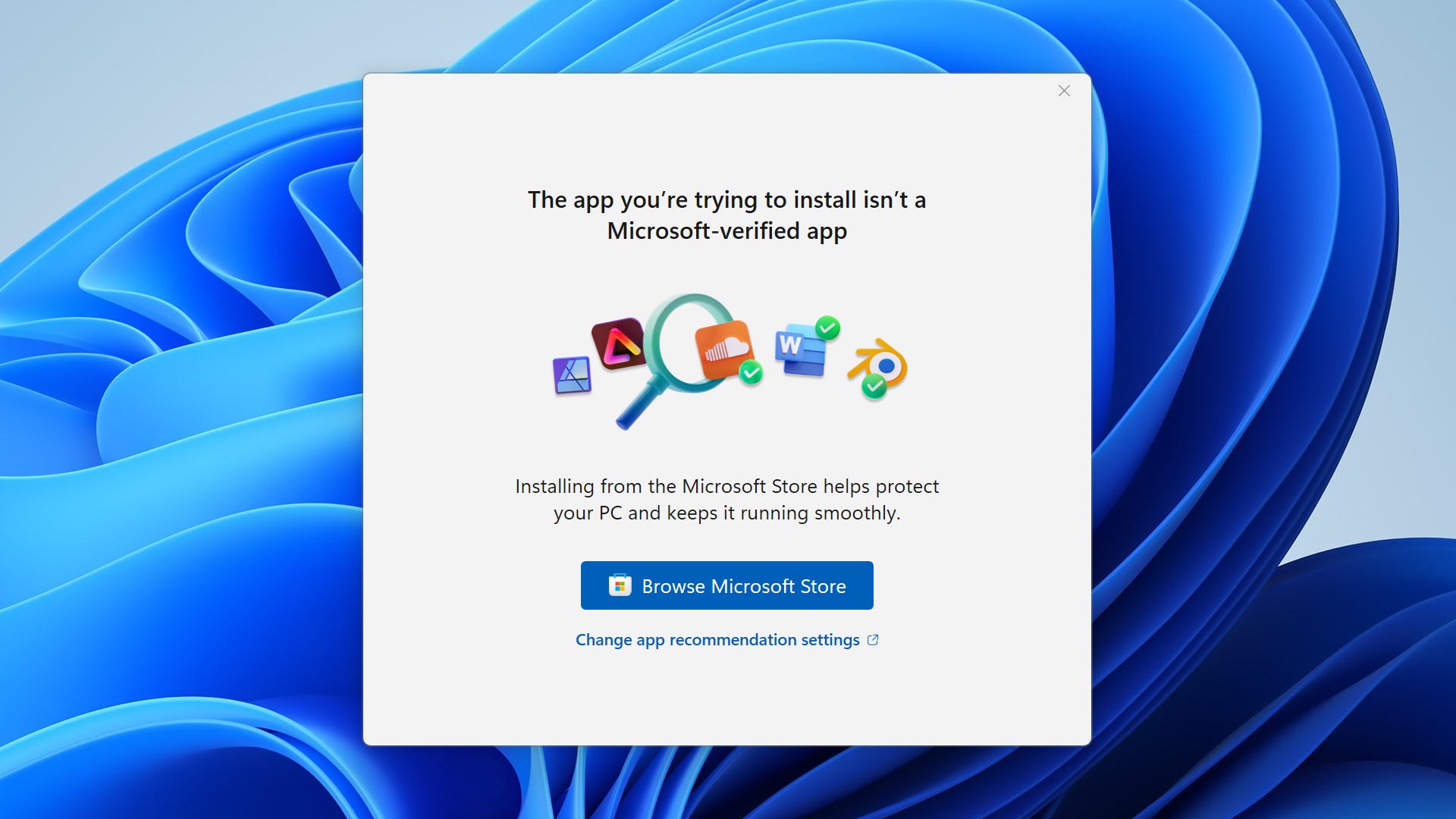 But you can also let it nudge you into installing apps from the Microsoft Store. There’s a “The Microsoft Store only (Recommended)” option here.